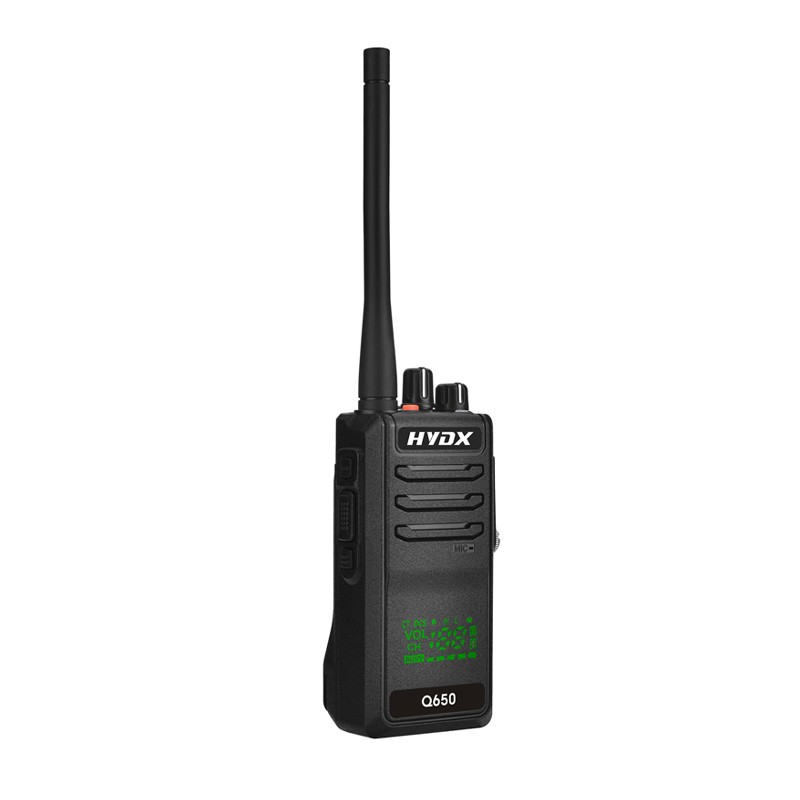 ·業務用トランシーバー。さまざまな環境条件がトランシーバーの伝送範囲に影響します。HYDX Q650 ビジネス トランシーバーの伝送距離は次のとおりです。建物内 (300,000 平方フィート/25 階)、都市部の密集または障害物のある環境 (0.5 ~ 1.5 マイル)、郊外地域 (1.5 ~ 2 マイル)、平坦な開けた地形 (> 2 マイル)。